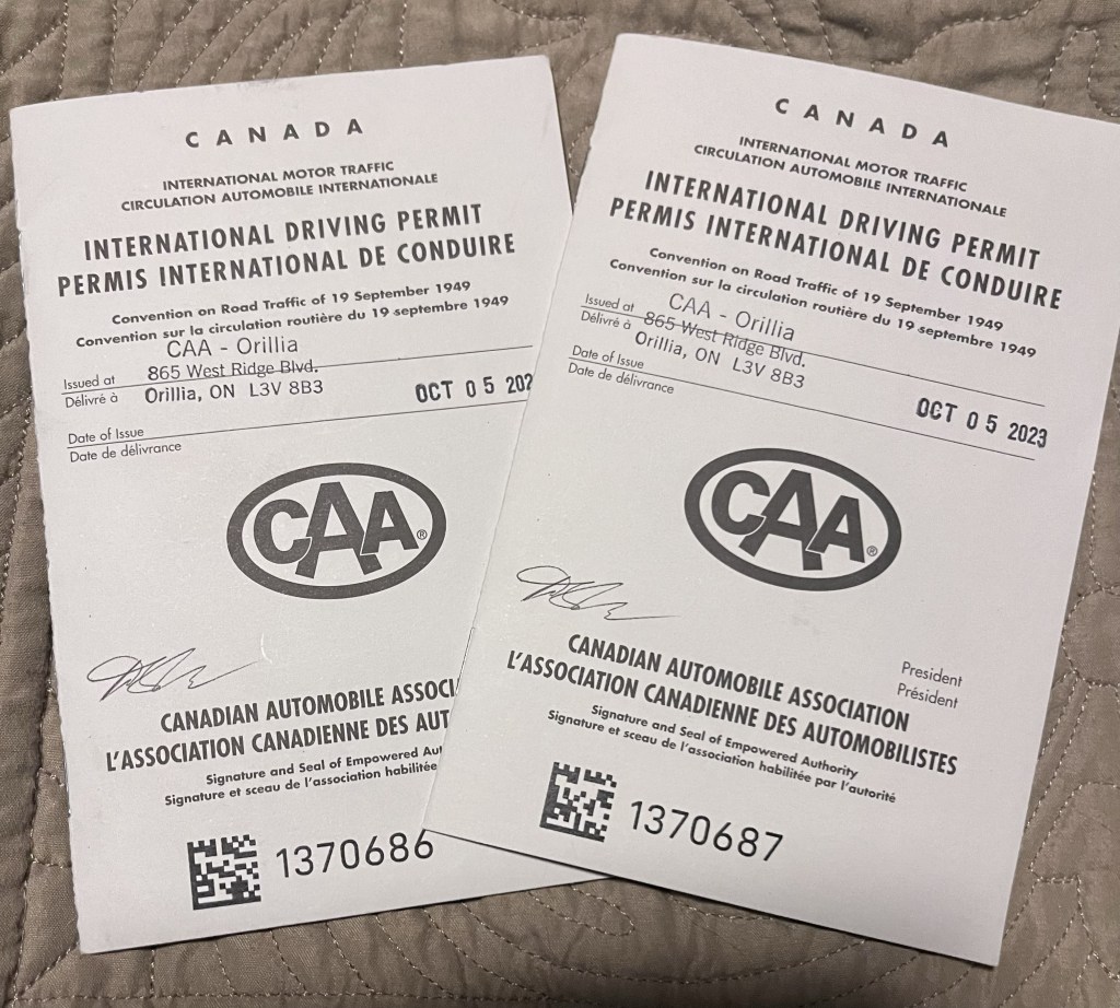 Thank goodness we both learned a stick shift as Gen Xers, because Automatic vehicles in Europe are very hard to come by, and often quite expensive to rent. Funnily enough, it’s been about 20 years since we’ve driven Manual, and we are both really looking forward to it! In fact, I paid 35Eu (about $50CAD at current exchange rates) extra as a second driver just so I could drive it once or twice while we are there. So, with IDPs in hand, we returned to home to … see what happens next.