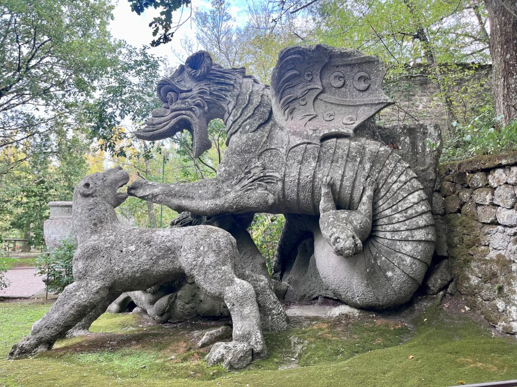 We arrived in Bomarzo through the internet finding of my youngest Niece, who turned us on to the Sacro Bosco (or Monster Park). This seemed like a good fit for October 30th, and my youths who have never spent a Halloween away from home.